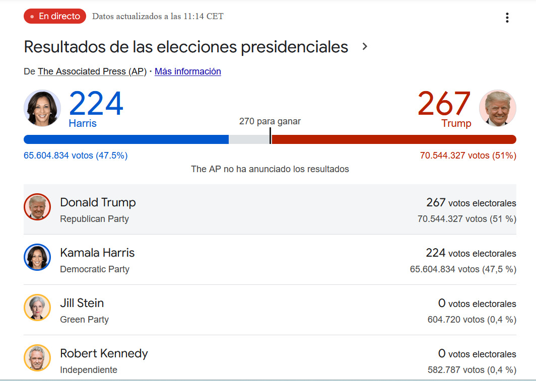 وشهدت العملية الانتخابية الأميركية تنافسا محتدما بين الديمقراطية هاريس والجمهوري ترامب في السباق إلى البيت الأبيض، مع توالي ظهور النتائج الأولية تدريجياً.