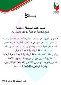 استمرارا لجهوده الرامية إلى تنظيم قطاع الصحافة الرياضية في المغرب ، وتنقيته من كل الشوائب ، أعلن المكتب التنفيذي للجمعية الوطنية للإعلام والناشرين ، هذا اليوم الأربعاء 26 فبراير 2025 ، رسميا عن تأسيس قطب الصحافة الرياضية التابع للجمعية.