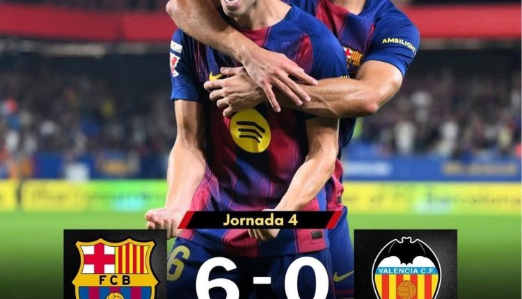 اكتسح نادي برشلونة ضيفه فالنسيا بسداسية نظيفة، في المباراة التي جمعت بينهما مساء السبت ضمن منافسات الجولة الرابعة من الدوري الإسباني “لاليغا”.
