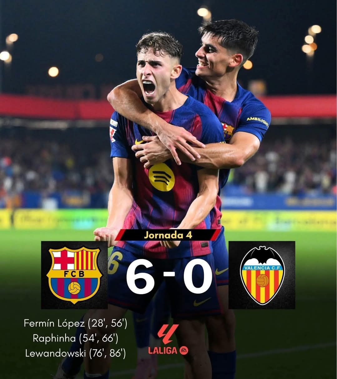 هذا الانتصار الكبير يعزز ثقة برشلونة في بداية الموسم ويؤكد عمق تشكيلته الهجومية، بينما ترك فالنسيا عاجزًا عن مجاراة الإيقاع السريع والضغط الكتالوني المستمر.